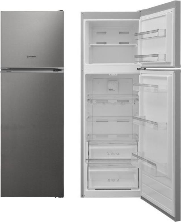 -Ψυγείο δίπορτο της Morris με χωρητικότητα 311 λίτρα, που μπορεί να καλύψει άνετα τις ανάγκες ενός ζευγαριού ή και μιας οικογένειας 3 ατόμων. Με την τεχνολογία no frost που έχει, δε συσσωρεύεται πάγος στα τοιχώματα του ψυγείου κι έτσι δεν χρειάζεται να κάνετε απόψυξη πάνω από μια φορά τον χρόνο. Θεωρείται αθόρυβο, 39db, χάρη στο χαμηλό επίπεδο θορύβου που διαθέτει.